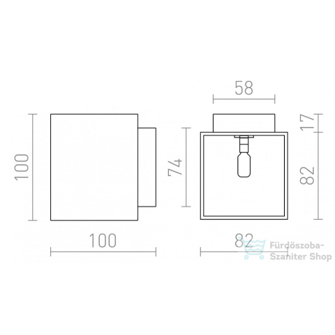 Falra szerelhető szögletes fém lámpatest, fel/le megvilágítással, G9 foglalatú izzóhoz.