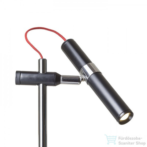 Elegáns kialakítású, króm asztali lámpa fekete csúsztatható LED reflektorral, piros textil kábellel.