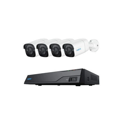 Kamerarendszer képrögzítési lehetőséggel - alkalmas kültérre, csatlakoztatás Ethernet rendszeren keresztül, Android, Windows és iOS operációs rendszerrel kompatibilis, kompatibilis a gyártó alkalmazásával, Google Assistant hangasszisztenssel vezérelhető, hálózati és PoE-csatlakozós tápellátás, Bullet kivitel, max. 8 NVR csatorna, éjjellátó funkció max. 30 m hatótávolságra, mozgás érzékelése, beépített mikrofon és hangfelvétel, IP67 védettségi fokozat, R