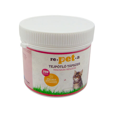 A Repeta Tejpótló macska tápszer speciális probiotikummal, vitaminokkal, alacsony laktóztartalommal (max.: 12%) rendelkezik. A különleges bélstabilizáló probiutikumnak köszönhetően alkalmas érzékeny kiscicák nevelésére. A születéstől az elválasztásig folyamatosan adható. A tápszer vemhes, szoptatós valamint idős, beteg, legyengült macskáknak is adható önálló táplálékként vagy a megszokott étrend mellett kiegészítésképpen.