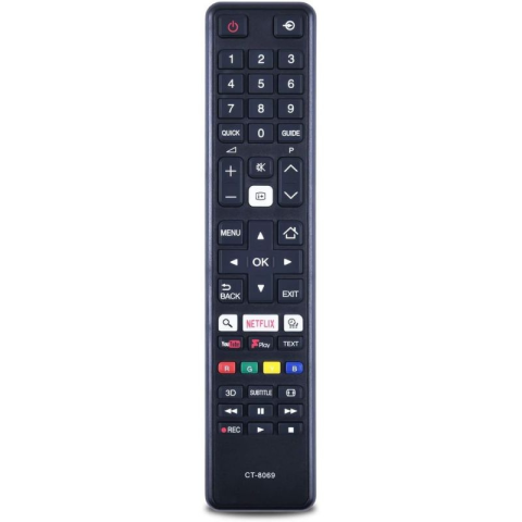 A Toshiba CT-8069 utángyártott távirányító, mely működési funkcióiban és kivitelezésében is megegyezik az eredetivel, csupán csak annyi a különbség köztük, hogy az utángyártott Tv távirányítón nincs márkajelzés.
