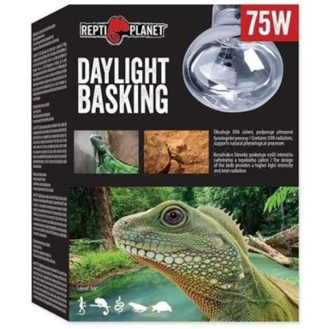 Repti Planet Daylight Basking 75 wattos nappali sütkérező izzó magas UVA sugárzással. Repti Planet 75 wattos nappali sütkérező izzó. Magas UVA sugárzása elősegíti a megfelelő élettani folyamatokat, illetve megfelelő melegedőhelyet biztosít. Növeli a te