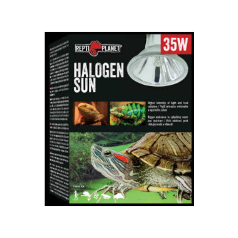 Repti Planet Halogen Sun energiatakarékos, intenzív fényű melegítő izzó. Repti Planet Halogen Sun halogén izzó, mely UVA és UVB sugarakat is tartalmaz. Energiatakarékos, intenzívebb fény- és hőhatású. UVA és UVB sugarakat is kibocsájt, melyek hozzájáru