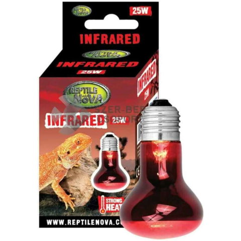 Reptile Nova infravörös terrárium izzók E27 foglalatba. Fókuszált fénye intenzív sütkérezést tesz lehetővé a terráriumi állatok számára, miközben hatékonyan növeli a környezeti hőmérsékletet. Innovatív infravörös sugárzása javítja az állatok közérzetét és színlátását. A vöröses fény nem zavarja meg a napi ciklust, így az izzó 24 órás hőforrásként használható akár más, nem melegítő fényforrásokkal párhuzamosan.