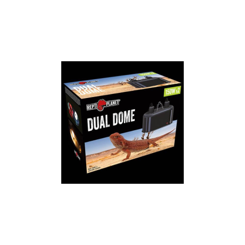 Repti Planet Dual Dome - dupla kerámia lámpa - terráriumokhoz (150Wx2)Alkalmas 150W-os spotlámpára (minden lámpánál)Nagyon tartós fekete kerámia hüvely, ellenáll a magas hőmérsékletigAz alumínium reflektor helyi fűtést és terrárium világítást hoz létreNöveli az UVB sugárzás intenzitásátA lámpa minden egyes alkatrészének kapcsolójától / kapcsolójától függetlenAlkalmas E27 izzók felszereléséreA lámpa tetején lévő szellőzőnyílások megfelelő szellő