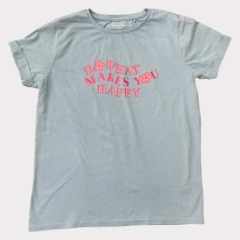 Reserved türkizkék felső Egyenes szabású, kerek nyakkkivágású, elején felirattal. Hibátlan állapotú.