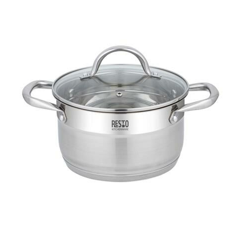 A Főzőedény / lábas, fedővel, 20 cm, 3,6 liter, RESTO Rigel 92104 (RERI92104) Varázsoljon professzionális konyhát otthonába a RESTO segítségével! -ergonomikus rozsdamentes acél fogantyú -belső mérőskála az edény első falán -a lábas alja deformációgát