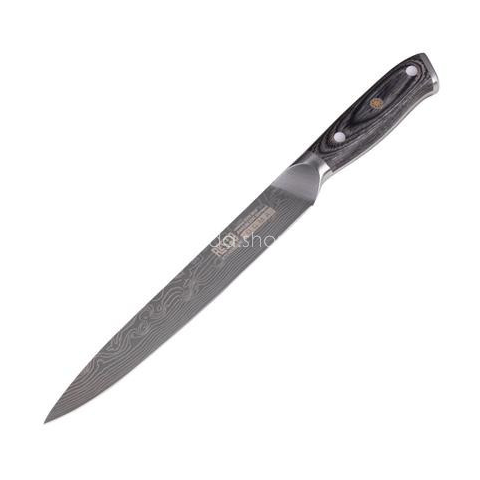 Szeletelő kés, 20 cm, RESTO Ogma 95341 Minden késünk kézzel készül speciálisan edzett acélból. -antibakteriális felület -lézergravírozott, damaszkuszi acélra stilizált penge -ergonomikus fogantyú -könnyen tisztítható -stílusos kialakítás -anyaga: rozs