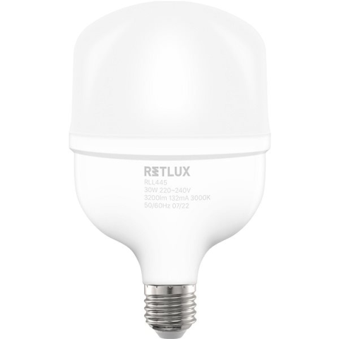 LED izzó - E27 foglalat, F energiaosztály, 30 W energiafelhasználás, 230 V feszültség, 3200 lm fényáram, 80 Ra színvisszaadási index (CRI), 10 cm átmérő, 25000 óra élettartam A megbízható Retlux LED izzó energiatakarékos és nagyon hosszú élettartammal rendelkezik, ami 25000 óra. A hagyományos izzókkal ellentétben csak kis mennyiségű hőt termel, ráadásul azonnal és villogás