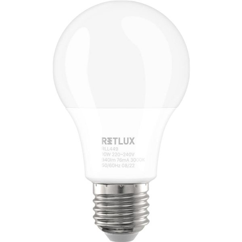 LED izzó - E27 foglalat, F energiaosztály, 10 W energiafelhasználás, 230 V feszültség, 940 lm fényáram, 80 Ra színvisszaadási index (CRI), 6 cm átmérő, 25000 óra élettartam A kitűnő Retlux LED izzó alacsony energiafogyasztással és hosszú élettartammal rendelkezik, ami 25000 óra. Minimális mennyiségű hőenergiát termel a hagyományos izzókhoz képest, és bekapcsolás után azo