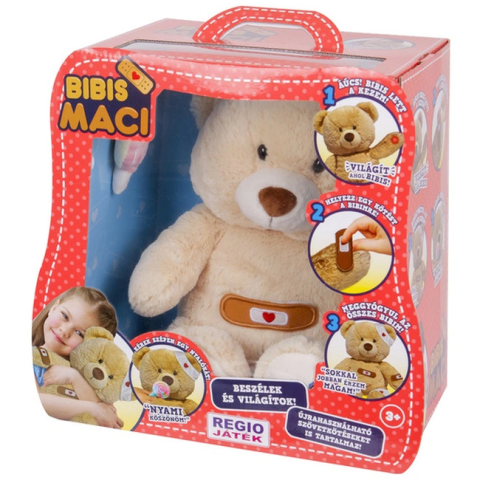 Retoys Bibis Maci Ajánlott 3-6 éves korig unisex [Cikkszám 96611]Retoys Interaktív plüssjáték - Bibis Maci A Retoys interaktív plüssjáték, a Bibis Maci, egy izgalmas és szórakoztató módot kínál a gyerekek számára a gondoskodás felfedezésére. A játék középpontjában Teddy áll, aki megsérült, és a feladatunk, hogy segítsünk neki. A mackón különböző vörösen izzó foltok találhatóak, amelyek azt jelzik, hol fáj neki. Ezek a foltok a mackó testének ötf