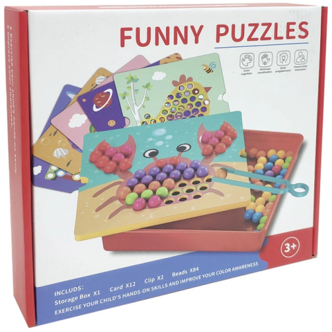 Retoys Golyós képkirakó képkirakó Ajánlott 3-6 éves korig unisex [Cikkszám 59538]A Retoys képkirakó játéka kiváló fejlesztő eszköz a három évesnél idősebb kicsik számára. Ez a játék nemcsak szórakozást nyújt, hanem segít a finommotorikus készségek fejlesztésében is. A gyermekek a mellékelt 12 lap és 84 színes golyó révén kreatívan színezhetik ki az alakzatokat, miközben a színeket és az ok-okozati összefüggéseket is gyakorolják. A golyók elhelyez