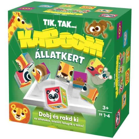 Retoys Kaboom Állatkert társasjáték Ajánlott 3-99 éves korig unisex [Cikkszám 10284]Retoys Kaboom Állatkert társasjáték egy izgalmas ügyességi játék, amely 1-4 fő számára készült. A játék célja, hogy a résztvevők dobjanak és helyezzék el a kockákat úgy, hogy megalkossák az állatok teljes képét. A játékosok lehetnek egyedülálló versenyzők vagy összeállhatnak csapatba, hogy közösen dolgozzanak a feladat megoldásán. Fontos, hogy figyelmesek legyenek, mi