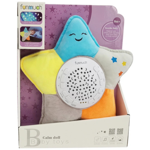 Retoys Plüss csillag kivetítővel Ajánlott 0-3 éves korig unisex [Cikkszám 55239]Retoys Interaktív plüssjáték Fedezze fel a varázslatos éjszakai égbolt élményét a Retoys plüss csillag kivetítőjével Ez a puha és szerethető játék nem csupán egy barát a gyerekek számára, hanem egy különleges éjszakai fényforrás is, amely csillagokat varázsol a gyermekszoba mennyezetére. A plüss csillag kivetítő ideális társ az esti lefekvéskor, segítve a gyermekek nyugodt