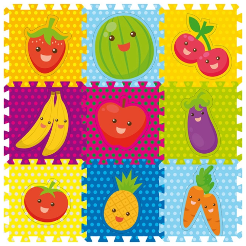 Retoys Szivacsszőnyeg - gyümölcsök, 9 db Ajánlott 3-10 éves korig unisex [Cikkszám 11741]Ajánlott 3-10 éves korig unisex.