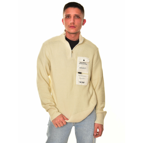 Termék leírás: Retro Jeans férfi pulóver IGORA HALF ZIP SWEATER 13Y006-T10AE91. Színe: krém 13Y006-T10AE91