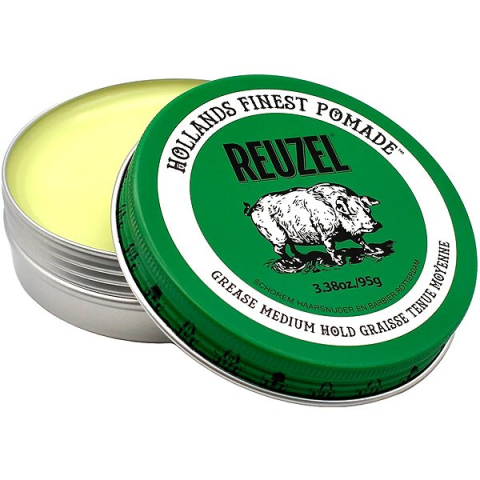 Pomádé - professzionális kozmetikum, fényesítő, hajsimító és fixáló, minden hajtípusra alkalmas, közepes fixálás, 95 g-os kiszerelésben A REUZEL Green Grease Medium Hold Hair Pomade lehetővé teszi, hogy olaj- és viaszbázisának köszönhetően szabályozhasd a rögzítés erősségét. Ha száraz hajra alkalmazod, erősebb frizurát ad. Nedves hajr