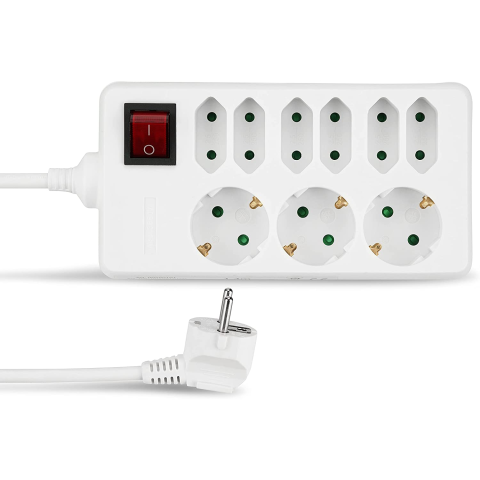 REV 00250101 250V Elosztó 9 aljzatos 1.4m - Fehér (00250101) hosszabbító, elosztó 1 kép