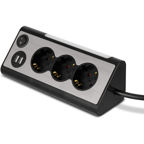 REV 230V Elosztó 3 aljzatos 1.4m - Fekete/Ezüst (2400050010)