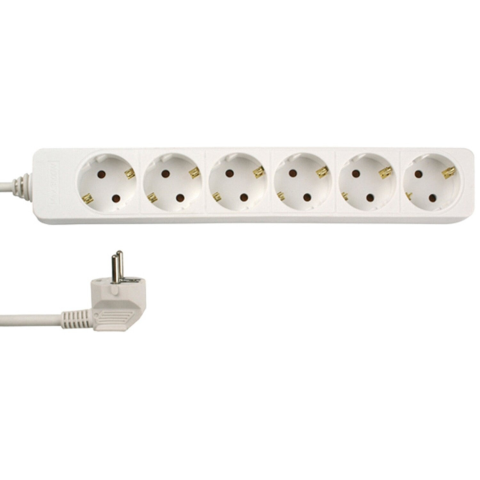 REV hálózati elosztó, 6 dugós, fehér, 3 m Termékjellemzők: - Derékszögű csatlakozódugók kényelmes használata lehetséges - Gyermekvédelemmel - A ház anyaga ütésálló - H05VV-F 3G1,5 mm2 tápvezeték - Ergonomikusan kialakított védőérintkezős dugós csatlakozó