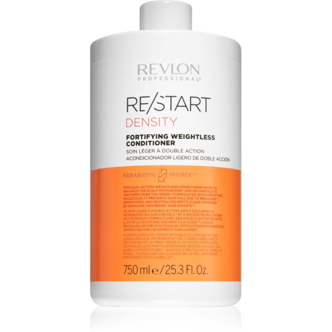 Revlon Restart Density hajerősítő lágy kondicionáló, 750 ml - Hajerősítő kondicionáló - Megakadályozza a haj töredezését és a hajhullást - Kettős hatású kondicionáló - Egyensúlyban tartja a fejbőr mikrobiomát - Regenerálja és revitalizálja a haj belső s