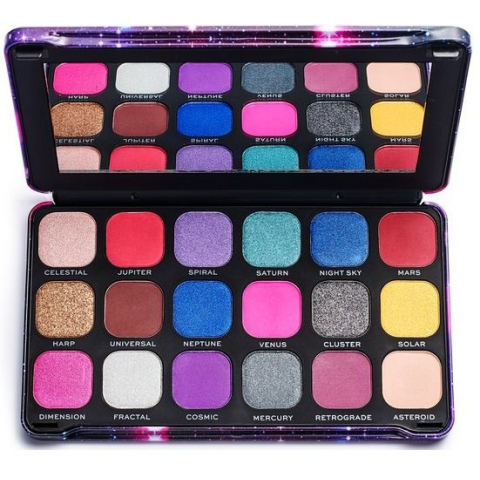 Szemhéjpúder paletta - többszínű tónus, 5+ színárnyalat A Makeup Revolution londoni dekorkozmetikai márka forradalmasította a sminkelést. Ezúttal egy csodaszép, az éjszakai égbolt és a távoli galaxisok ihlette REVOLUTION Forever Flawless Constellation pale