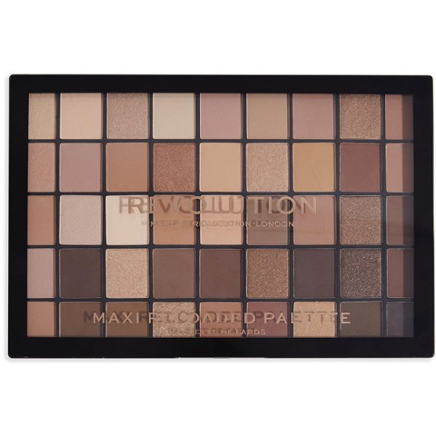 Szemhéjpúder paletta - bézs tónus, 5+ színárnyalat A Makeup Revolution dekorkozmetikai márka egy gyönyörű, nagy REVOLUTION Maxi Re-Loaded palettát készített neked, amely 45 erősen pigmentált szemhéjfestéket tartalmaz. A palettán nude árnyalatokban tal