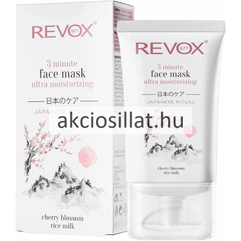 Revox Japanese Ritual 3 perces intenzív hidratáló arcmaszk 30ml A Revox Japanese Ritual 3 perces intenzív hidratáló arcmaszk gazdag hatóanyagokkal van tele, melyek gyors és hatékony eredményeket biztosítanak a bőr számára. Ez a maszk ideális választás, ha