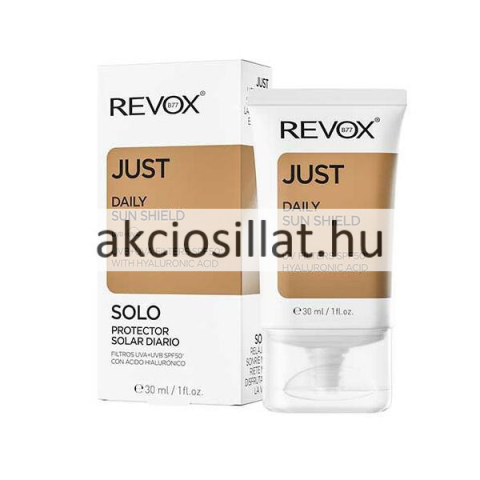 Revox fényvédő arckrém hialuronsavval SPF50 30ml Revox fényvédő arckrém mindennapi fényvédelemhez. A fényvédő megóvja az arcbőrt az öregedést okozó káros UVA- és a leégést okozó UVB sugaraktól, miközben hidratálja és puhává varázsolja azt.