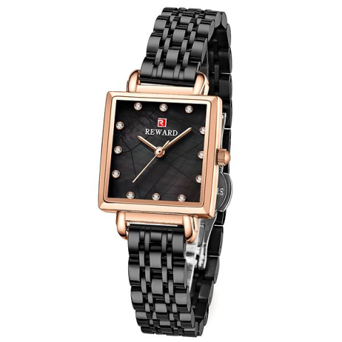 Karóra nőknek - analóg idő megjelenítés, automatikus, szögletes számlap, elegáns, számozás nélküli, a tok anyaga acél, a tok színe rózsaarany, a szíj anyaga acél, a szíj színe fekete A kitűnő Női karóra - RD21041LF + INGYENES ajándék nőknek karóra alkalmas mindennapi viseletre. Az alapját egy 25 mm széles szögletes számlap alkotja. Az automatikus óraszerkezet feltölti az akkumulát