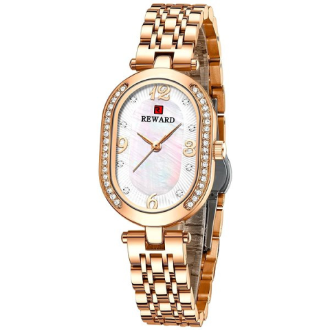 Karóra nőknek - analóg idő megjelenítés, óramű típusa quartz, ovális számlap, elegáns, arab indexek, a tok anyaga acél, a tok színe arany, a szíj anyaga acél, a szíj színe arany A kitűnő REWARD női karóra RD21058LG + ajándék nőknek karóra nagyszerű viselet hétköznap és ünnepnap is. Az alapját egy 34 mm átmérőjű ovális számlap képezi. A Quartz technológia hosszú élettartamot é