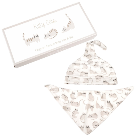 1 kép Rex London 100% organikus pamut babasapka és kendő szett díszdobozban, cica
