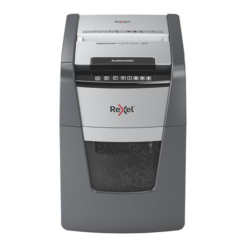 1 kép REXEL Iratmegsemmisítő, konfetti, 90 lap, REXEL, "Optimum AutoFeed+ 90X"