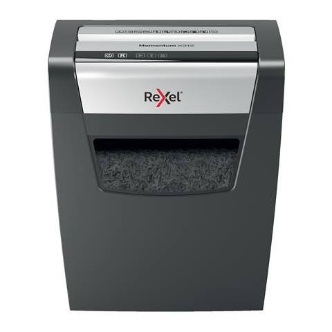 A Rexel Momentum X312 iratmegsemmisítő egy kiváló minőségű készülék, amelyet otthoni és kis irodai használatra terveztek. Ez az iratmegsemmisítő egyszerre akár 12 A4-es lap megsemmisítésére is alkalmas, így hatékonyan kezeli a mindennapi papírmunka mennyiségét. A készülék konfetti vágó rendszerrel dolgozik, amely garantálja a magas biztonsági szintet (P-4 DIN), így biztosítva az érzékeny dokumentumok bizalmas kezelését.A Momentum X312 ergonomikus kialakítása