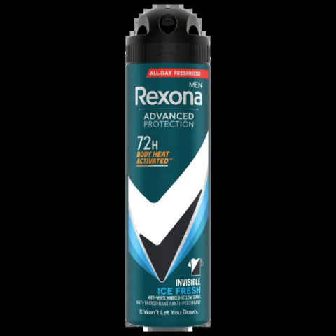 A Rexona Men Advanced Protection Invisible Ice Fresh izzadásgátló aeroszol 150 ml-es kiszerelésben biztosít akár 72 órás védelmet az izzadás és a kellemetlen szagok ellen. Frissítő illata és gyorsan száradó formulája egész napos frissességet garantál. Szabadalmaztatott izzadásgátló technológiájának köszönhetően megbízható védelmet nyújt a férfiak számára.