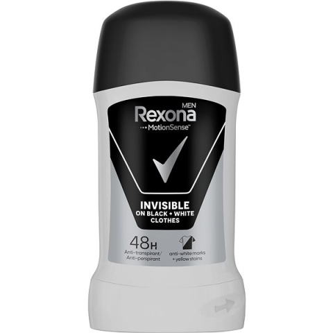 Izzadásgátló - férfi, stift, zsíros, normál, kombinált, száraz és érett bőrre ajánlott, frissítő illat, védő és frissítő, mindennapi használatra, nem hagy foltot, alkoholmentes, 50 ml-es kiszerelés A Rexona Men Invisible Black + White 50 ml egy férfi stift dezodor, amely akár 48 órás védelmet nyújt az izzadás és a kellemetlen szagok ellen. Különleges összetételének köszönhetően megakadályozza a