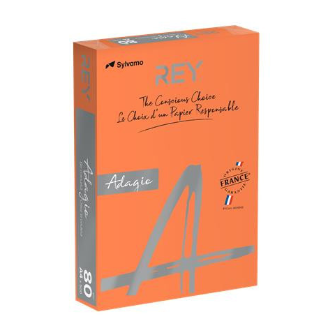 Másolópapír, színes, A4, 80 g, REY Adagio, intenzív narancssárga - kiváló minőségű, kétoldalas másolásra is alkalmas, anyagában színezett másolópapír - felhasználható fénymásoláshoz, tintasugaras és lézernyomtatókhoz - megkapta a PEFC tanúsítványát,