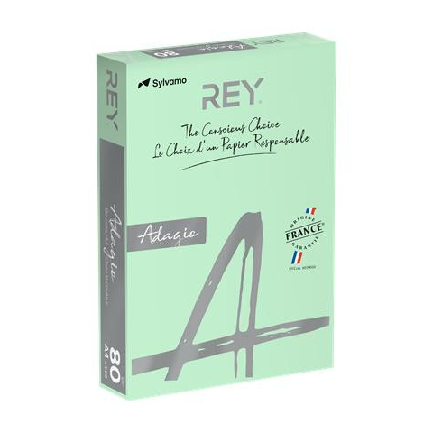 Másolópapír, színes, A4, 80 g, REY Adagio, pasztell zöld - kiváló minőségű, kétoldalas másolásra is alkalmas, anyagában színezett másolópapír - felhasználható fénymásoláshoz, tintasugaras és lézernyomtatókhoz - megkapta a PEFC tanúsítványát, megfelel