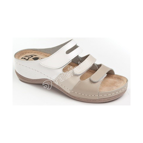 3 pántos tépőzáras bőrből készült papucs, szép ívű felsőrész, kényelmes viselet .