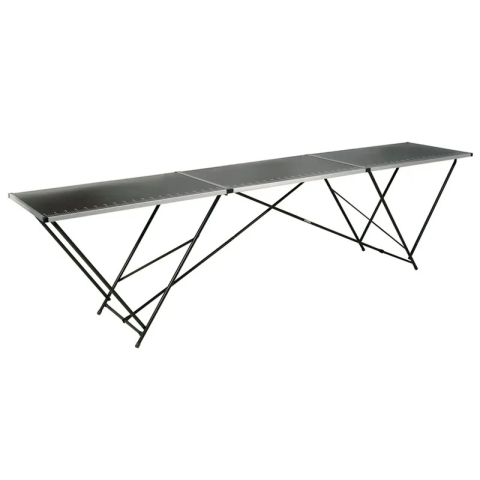 Tapétázó asztal erős alumínium keretben, fém lábakkal.