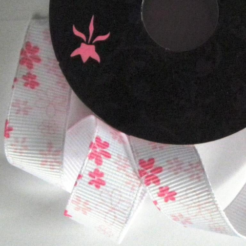 1 kép Ribbon Boutique Dekorszalag - fehér, rózsaszín virágmintás