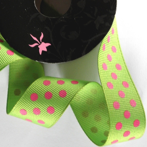 1 kép Ribbon Boutique Dekorszalag - zöld-pink pöttyös