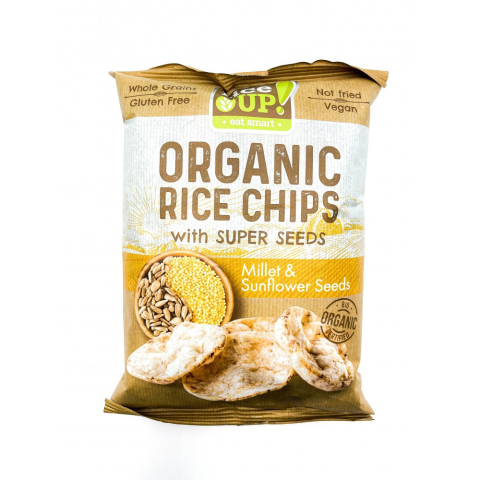 Az új, Rice Up! Chipsek teljes kiőrlésű barna rizsből készültek. Vegán.Gluténmentes.