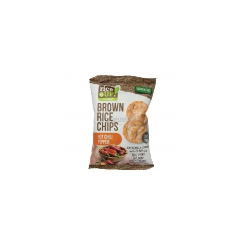 Rice Up barna rizs chips csípős chili ízű 60 g Gluténmentes Csípős chili ízű Barna Rizs Chips, amely teljes kiőrlésű barna rizsből készül, a gluténmentes étrendbe beilleszthető. Több mint 50%-kal kevesebb zsírt tartalmaz, mint egy hagyományos burgonya
