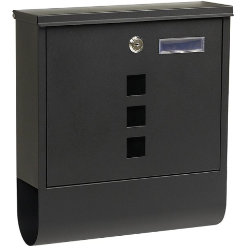 Postaláda - kültéri, fali, acél, névkártya, méretek 24,3 × 30 × 8,5 cm (H×Sz×Mé), fekete kivitel A Richter Czech BK.210.CM egy acél postaláda modern és időtlen fekete megjelenéssel. A postaládán található egy praktikus ablak a névtábla elhelyezéséhez illetve egy henger alakú tartó az újságoknak.