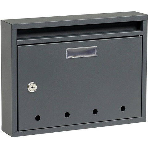 Postaláda - kültéri, fali, acél, névkártya, méretek 24 × 32 × 6 cm (H×Sz×Mé), antracit kivitel A Richter Czech BK.24.D.AM egy acél postaláda modern és időtlen antracit kivitelben. Praktikus ablakkal van ellátva névcímke beillesztésére, és különösen alkalmas kültéri elhelyezésre. A