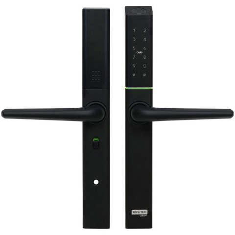 Ajtó vasalat - csúcsos, kilincs - kilincs kivitel, beltéri, jobbos ajtó és balos ajtó ra, anyaga alumínium, 35 - 60 mm vastagságú ajtókhoz, fekete kivitel, ujjlenyomat-leolvasó, bluetooth feloldás és monitoring, Android és iOS támogatás, Apple Home és Google Home kompatibilis, csatlakozás bluetooth segítségével A strapabíró Richter Czech SMART vasalat kényelmet kínál a könnyű kezelésnek és az intuitív vezérlésnek köszönhetően. Mindkét oldalán kilincs találh