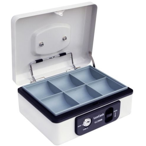 Pénzkazetta - acél, mérete 200 x 95 x 170 mm, tömege 1,06 kg, a csomag része 2 db kulcs, érme tálcák, színe fehér Egyszerű megoldás a kisebb pénzösszegek tárolására és szállítására - ez a Richter Czech acél pénzkazetta, fehér kivitelben kék részletekkel. A pénztárgép kiváló minőségű acélból készült, epoxigyanta p