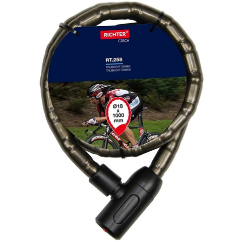 Kötélzár - Kerékpár és motorkerékpár zár, henger 10 rugalmas lamellával és burok a piszok ellen, szín: füstös fekete, nettó tömeg: 0,55 kg, beleértve a csomagolást, 2 db kulcs (1 db fénnyel). Biztosítsa a kerékpárját, vagy motorkerékpárját ezzel a Richter cseh RT.258.18x1000.CRN zárral, és akadályozza meg vele a lopást. Ez a zár magas minőségű feldolgozásban áll rendelkezésére, amely kieme