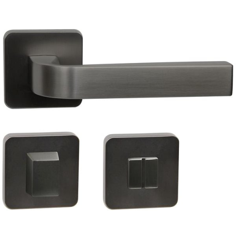 Ajtó vasalat - rozettás, négyzet alakú rozetta, kilincs - kilincs kivitel, beltéri, jobbos ajtóra, zár típusa WC, anyaga spiáter, matt felület, fekete kivitel A tartós Richter Czech ajtó vasalat garantálja az ajtó teljes funkcionalitását. Mindkét oldalán kilinccsel, amely gyors és egyszerű nyitást és zárást tesz lehetővé. A rozetta két részből tevődik össze